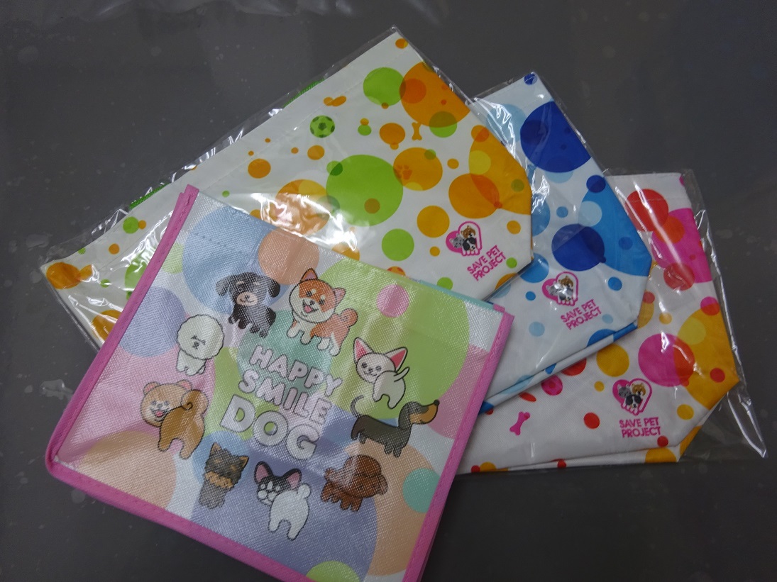 去年と同様のいろいろなワンちゃんのイラストがついたバックもあります。